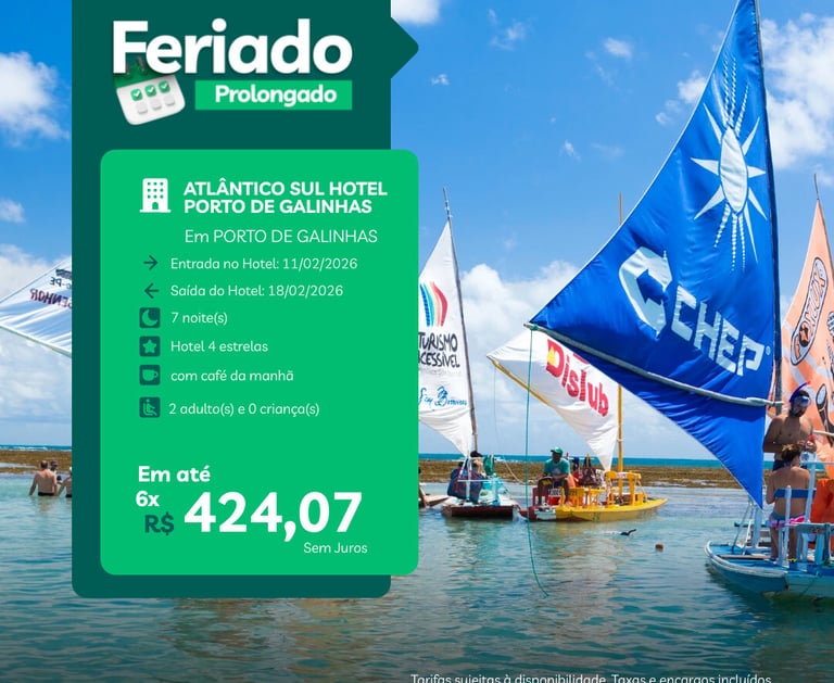 Visite Porto de Galinhas, Hotel para 2 pessoas por 7 noites